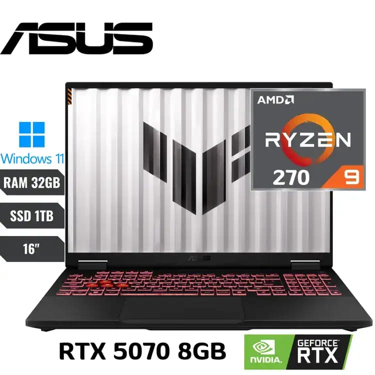 ASUS TUF A16 FA608UP‑A16 | Ryzen 9 270 AI, 32GB RAM, 1TB SSD, RTX 5070 8GB, 16″ WUXGA 165Hz, Windows 11